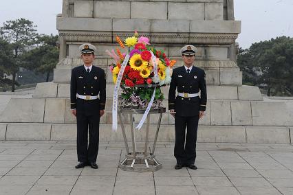 4月1日下午,我們在系教員常路賓帶領(lǐng)下,來到位于錦州的遼沈戰(zhàn)役紀念館,向英雄紀念碑敬獻花籃。儀式在雄壯激昂的《獻花曲》中拉開序幕,兩名禮兵邁著鏗鏘有力的禮步將花籃緩緩送到紀念塔正前方?;ɑ@挽聯(lián)上寫道:“功業(yè)常齊天地永,紅旗自由后人擎;中國人民解放軍海軍工程大學敬挽。”在主持人的組織下,我們統(tǒng)一脫帽,向烈士紀念塔默哀一分鐘。并重溫了入伍宣誓。最后,教員對我們說道:“同志們,歷史證明,強國必先強軍。今天的你們是以共和國未來海軍軍官的身份來到此地,更應當學習先烈們的優(yōu)秀品質(zhì),不斷磨礪自己,努力提升自己,在強軍興軍的征程上奉獻自己的青春熱血!”